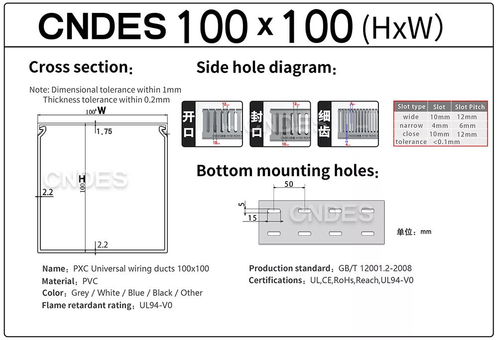 Ngoptimalake proyek pengkabelan nganggo Saluran Kabel Manajemen Kawat 100 × 100 sing Disesuaikan. Minangka produsen lan pemasok tray kabel PVC terkemuka ing China, CNDES nyedhiyakake solusi sing dipercaya, tliti dhuwur, lan bisa disesuaikan kanggo kabeh kabutuhan manajemen kabel. Kita duwe kabeh spesifikasi saluran kabel (nampan kabel). Yen sampeyan perlu specifications liyane, please aran gratis kanggo hubungi kita!