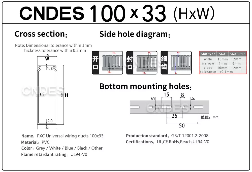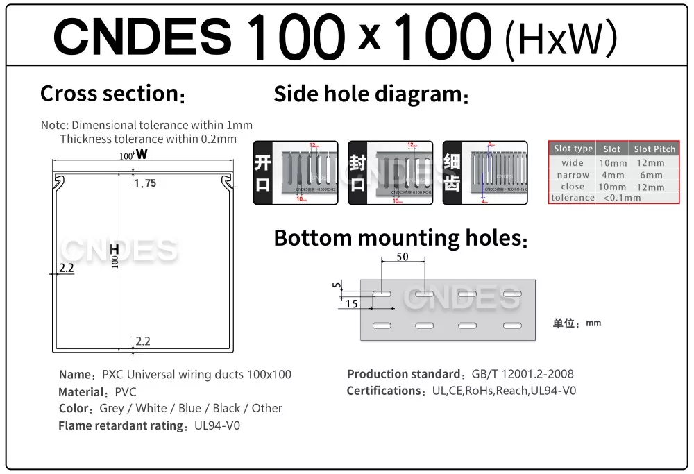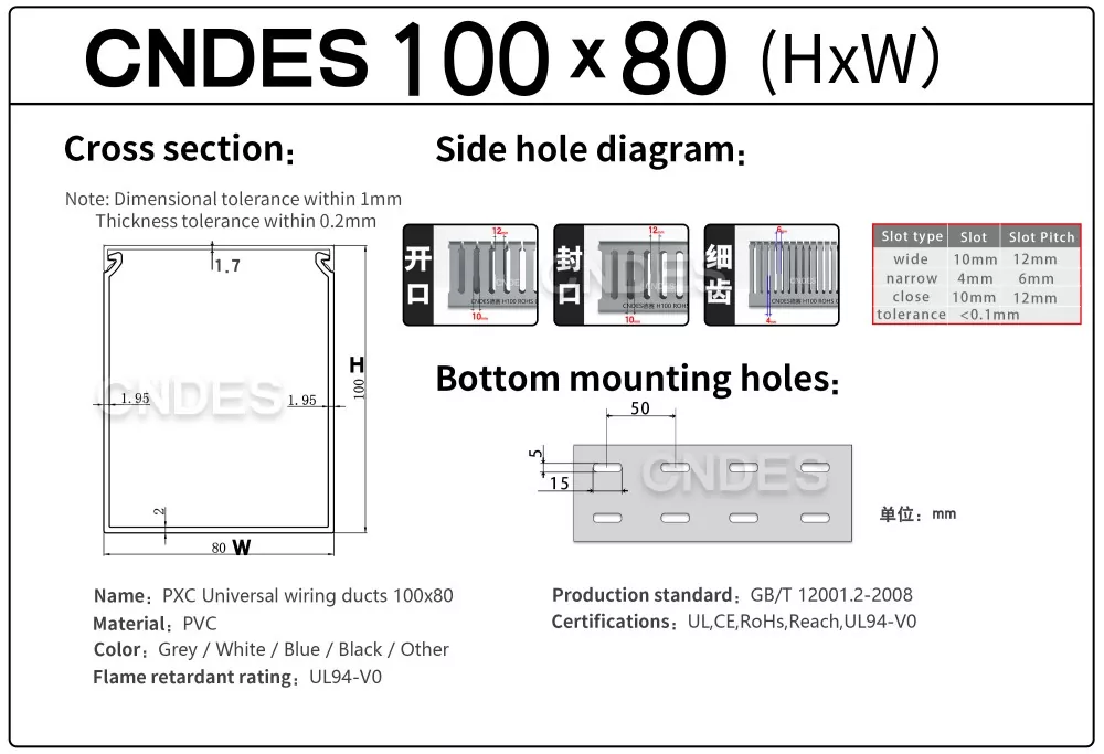 CNDES punika Produsèn tray kabel profesional karo 24 taun pengalaman, spesialisasine ing produksi Customized 100mm Dhuwur Open Slot PVC Enclosure Wiring Ducts. Ing kene, kita bakal ngenalake produk seri tray kabel dhuwur 100mm.