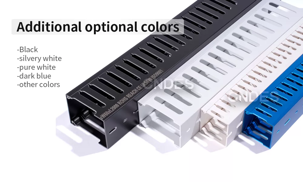 Nawakake macem-macem ukuran saka ultra-kompak (20 × 15mm) nganti gedhe (100 × 120mm), nampung macem-macem jumlah kabel lan diameter-kayata ukuran 40 × 60mm sing cocog kanggo kabel kabinet server. Kasedhiya ing werna standar kaya putih, abu-abu, lan ireng, utawa selaras karo logo perusahaan lan nomer baris kanggo gampang categorization lan manajemen kabel meningkat. Slotted PVC Enclosure Wiring Duct kalebu sawetara aksesoris lengkap, kalebu konektor sing cocog (kayata klip U-shaped), piring tutup, lan kurung. Ndhukung instalasi screw-fastening lan clip-on, kompatibel karo macem-macem cara pemasangan kanggo nyederhanakake proses konstruksi.