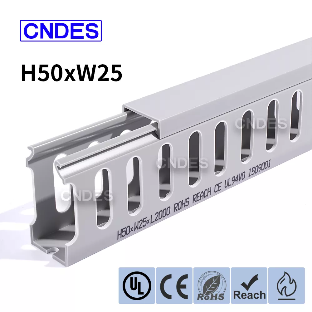 Nggolek cara sing gampang lan dipercaya kanggo ngatur kabel ing lemari listrik utawa panel industri? Saluran Kabinet Listrik PVC Slotted 50 × 25mm Customized saka CNDES dirancang supaya kabel sampeyan tetep rapi, bisa diakses, lan aman.