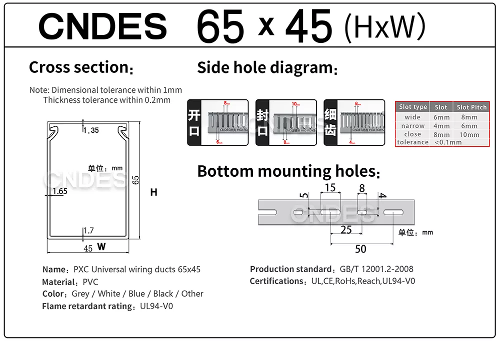 Yen sampeyan sumber Customized 65 × 45 Gray Slotted PVC Wiring Ducts saka pabrikan lan supplier dipercaya ing China, CNDES nawakake kualitas konsisten, pangaturan dhewe fleksibel, lan layanan profesional.