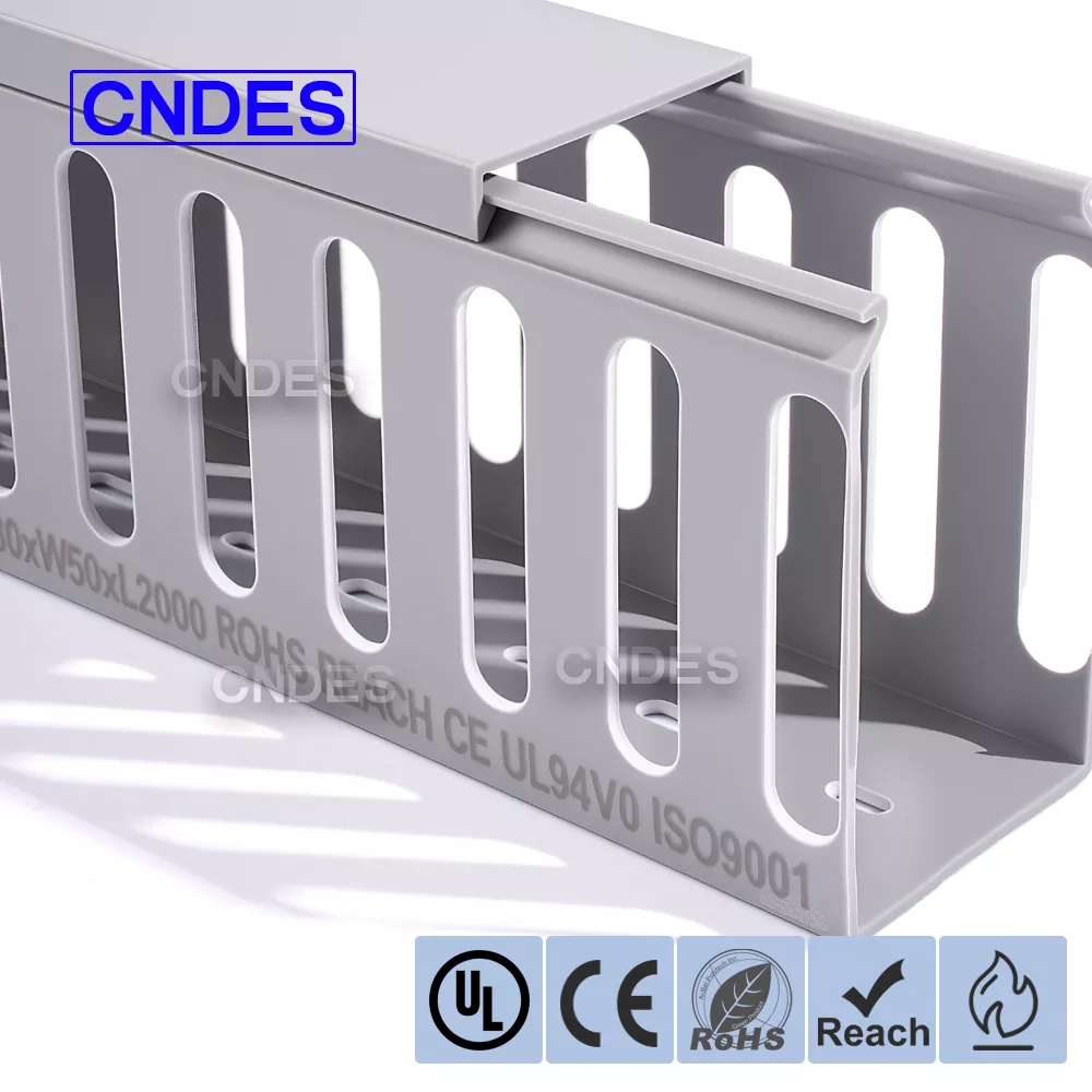 CNDES punika Produsèn profesional saka PVC slotted nampan kabel dumunung ing China. Ing kene, kita bakal ngenalake Organizer Kabel Panel PVC 80 × 50 Slotted, ing ngendi 80 * 50mm nggambarake tray kabel kanthi dhuwur 80mm lan jembaré 50mm.
