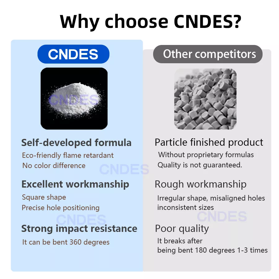 Nalika tray kabel standar gagal kanggo nampung harnesses wiring Komplek, CNDES Customized 80 × 80 Slotted PVC Switchboard Wiring Duct pilihan apik. Kanthi ruang internal gedhe 80mm * 80mm, dirancang khusus kanggo skenario sing dikarepake dhuwur kayata kabel backbone pusat data, klompok daya peralatan industri, lan kabel terpusat ing lemari kontrol gedhe. Gampang nampung lan ngatur kabel sing akeh, pamitan kanggo keruwetan lan kemacetan sapisan lan kanggo kabeh.