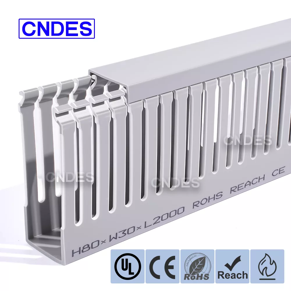 Customized 80 Dhuwur Slotted PVC Automation Cable Duct saka CNDES dirancang kanggo manajemen kabel efisien ing sistem otomatisasi industri. Kanthi dhuwur 80 mm lan desain slotted, saluran iki nyedhiyakake papan sing cukup kanggo kabel kanthi kapadhetan dhuwur nalika tetep kabel diatur lan dilindhungi ing sistem kontrol kompleks, PLC, lan aplikasi kabel mesin.