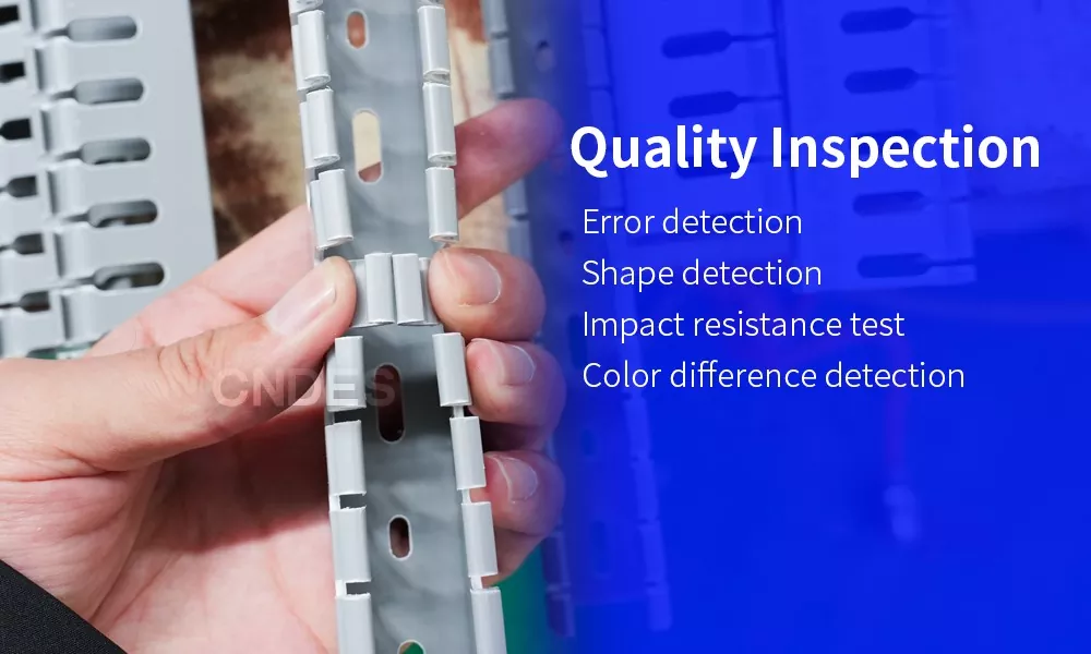 Pemriksaan kualitas standar penting kanggo nyedhiyakake produk sing apik. Ing CNDES, nguber kualitas kita ora telas. Kita nyisakke ora gaweyan kanggo nyedhiyani pelanggan karo produk dipercaya. Kita duwe papat inspektur kualitas sing kerja shift kanggo nganakake pemeriksaan online produk kita. Iki mesthekake yen 80 Dhuwur Slotted PVC Automation Cable Ducts kita duwe wangun kothak, duwe lumahing Gamelan, ketemu standar kateguhan ditrima,